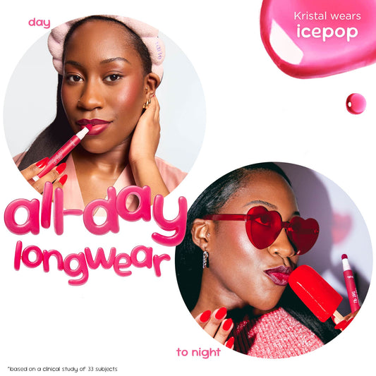 Longwear lip tint with a pompom cushion tip for lip blushing in a click! Get transfer-proof color that stays juicy. Pair it with your fave Dunkin’ Refresher for the perfect lip & summer sip combo!