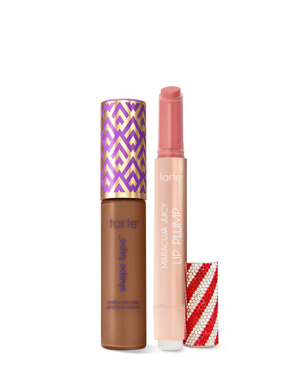 Full-size shape tape™ concealer + FREE full-size limited-edition maracuja juicy lip plump with a blingy rhinestone cap.