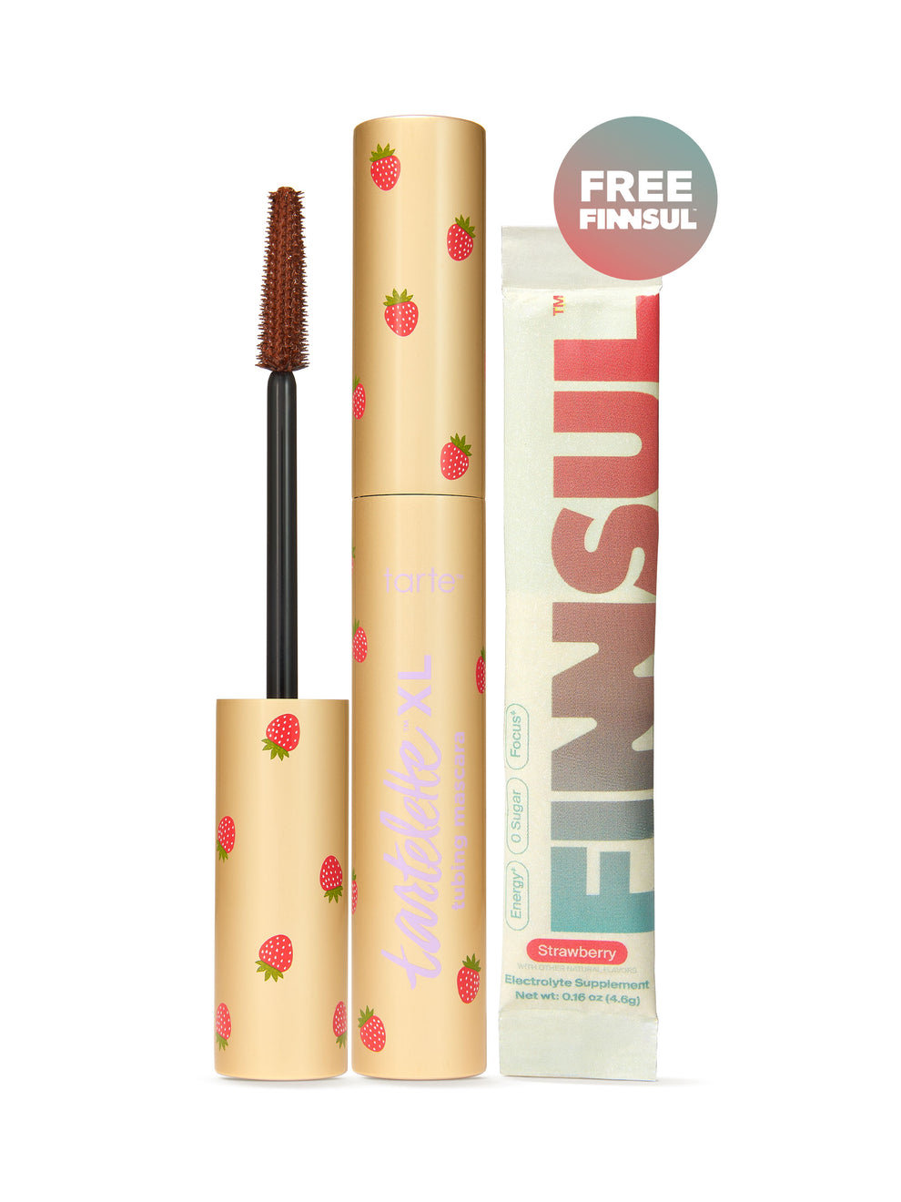 Lashes that hit, plus your new daily sip. This limited-edition tarte™ x FINNSUL™ set includes your fave XL tubing mascara & a FREE FINNSUL™ Focus‡ Electrolyte supplement in strawberry to sip while you get ready.