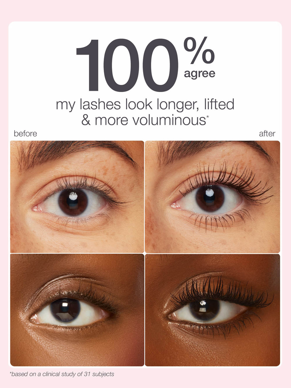 *based on a consumer panel study of 32 subjects **Source: Circana, LLC, U.S. Prestige Beauty Total Measured Market, Makeup Mascara by Brand, Dollar & Unit Sales, January-December 2025